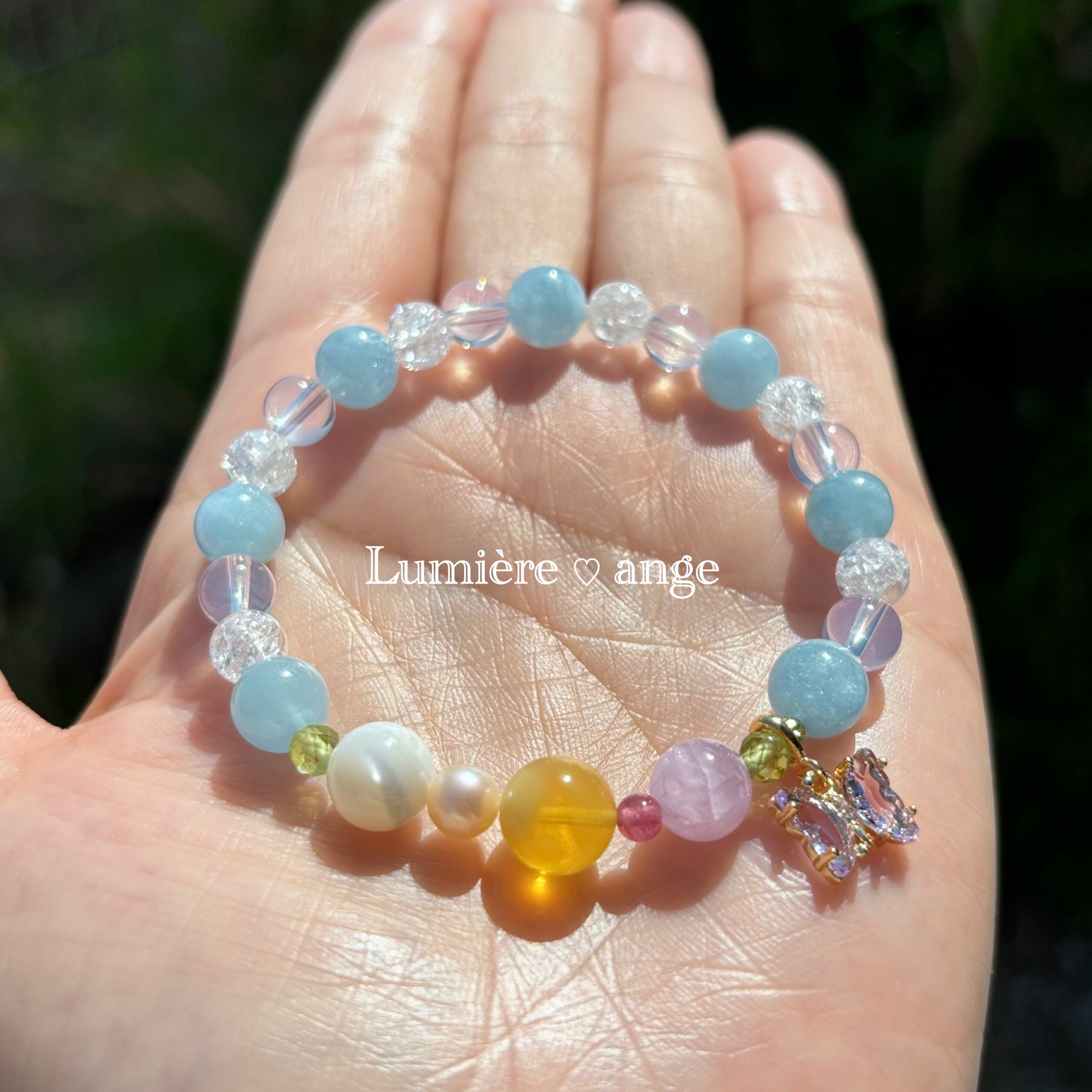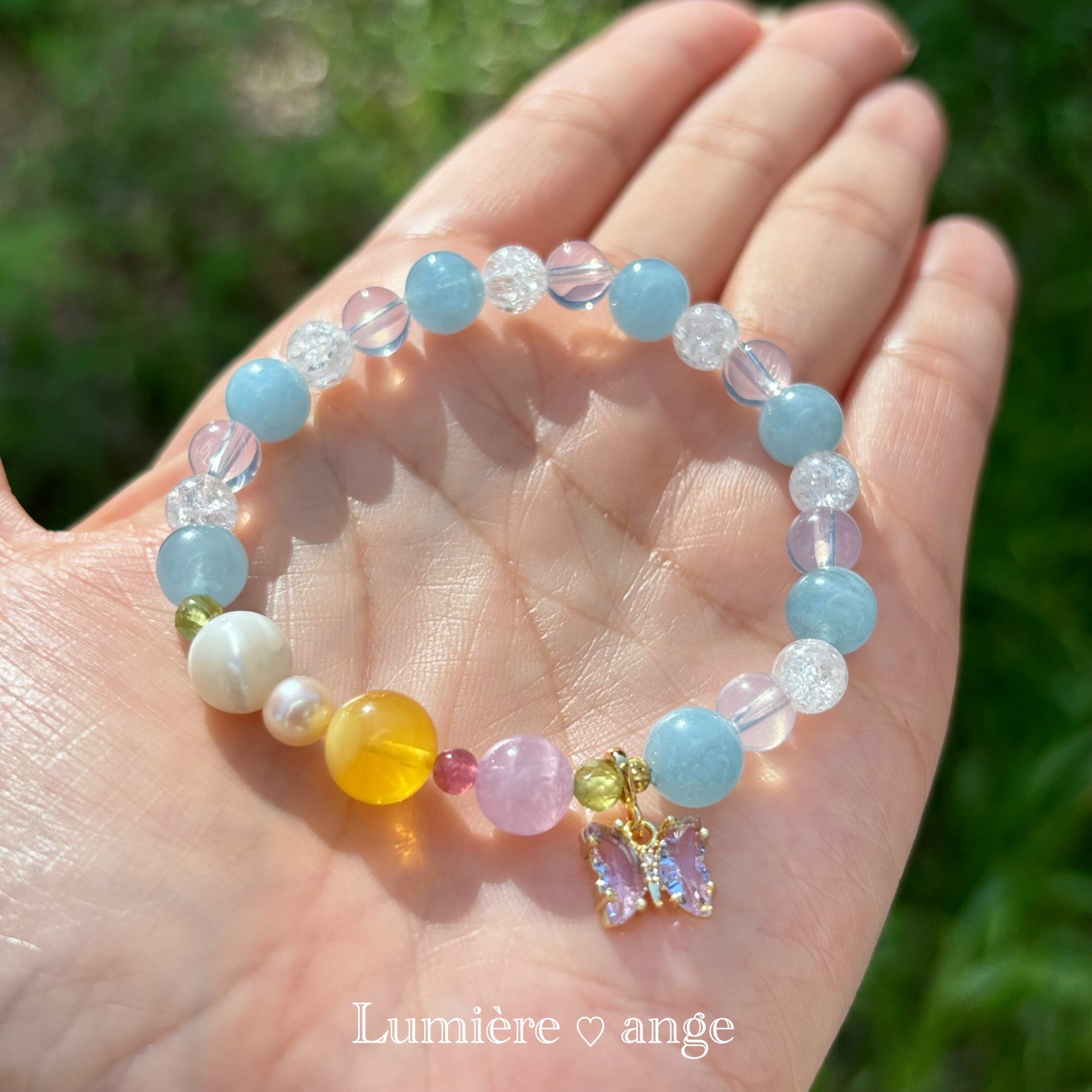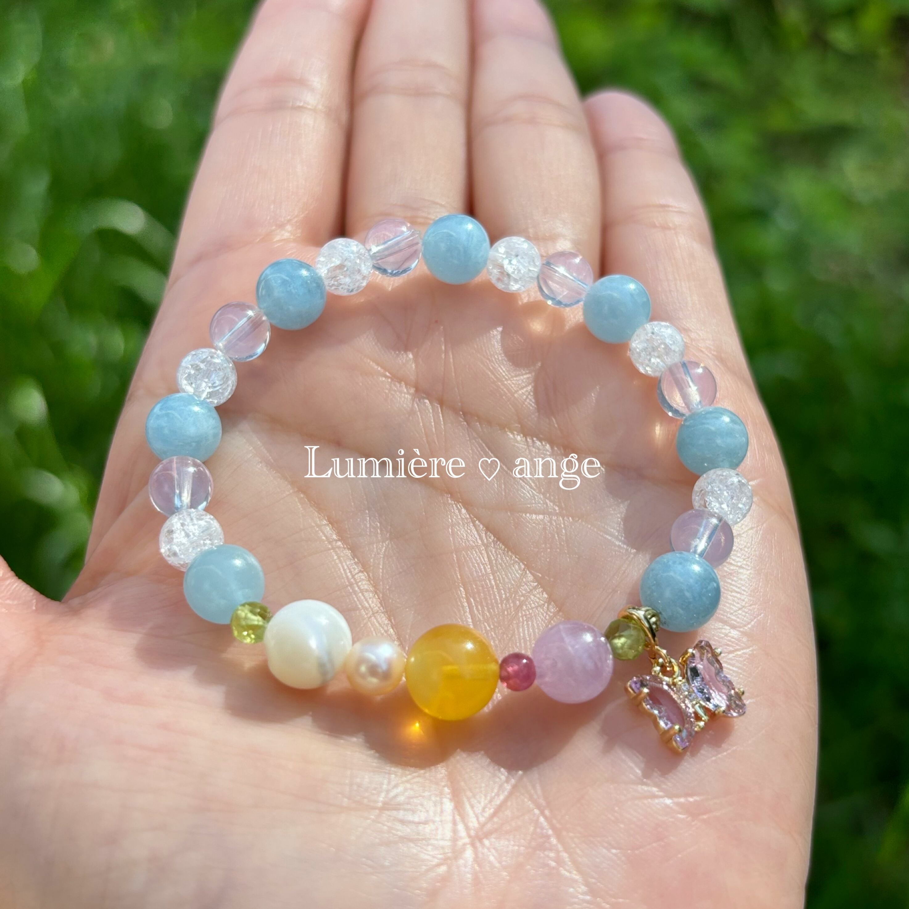 ✧︎*。透き通る海のような清らかなエネルギーでネガティブな感情を癒し心に安らぎを与え、人に対して優しい気持ちへ導き柔軟な心で自他を愛し、受け入れられるようにサポートしてくれるブレスレット✧︎*。